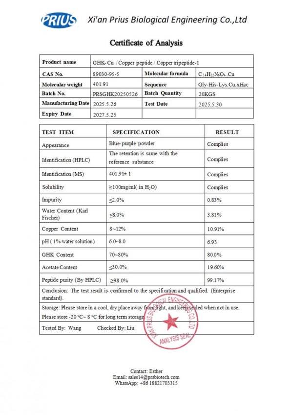 1 gram ampoules - Copper Peptide Cosmetic Powder